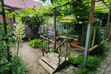 Для удобства гостей предусмотрен гараж и место под парковку во дворе.